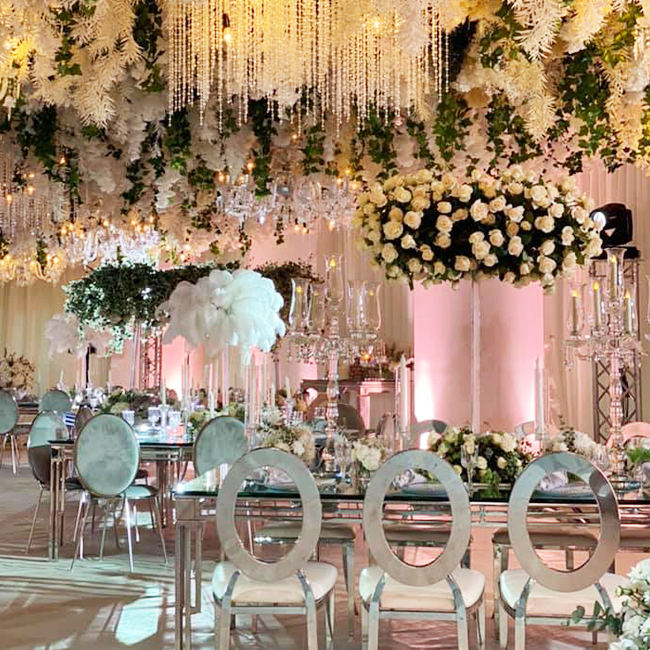 حفلات الزفاف: تناسق الألوان مع فستان العروس والديكور مهم جدًا. الأبيض، الوردي الفاتح، والخزامى خيارات شائعة.